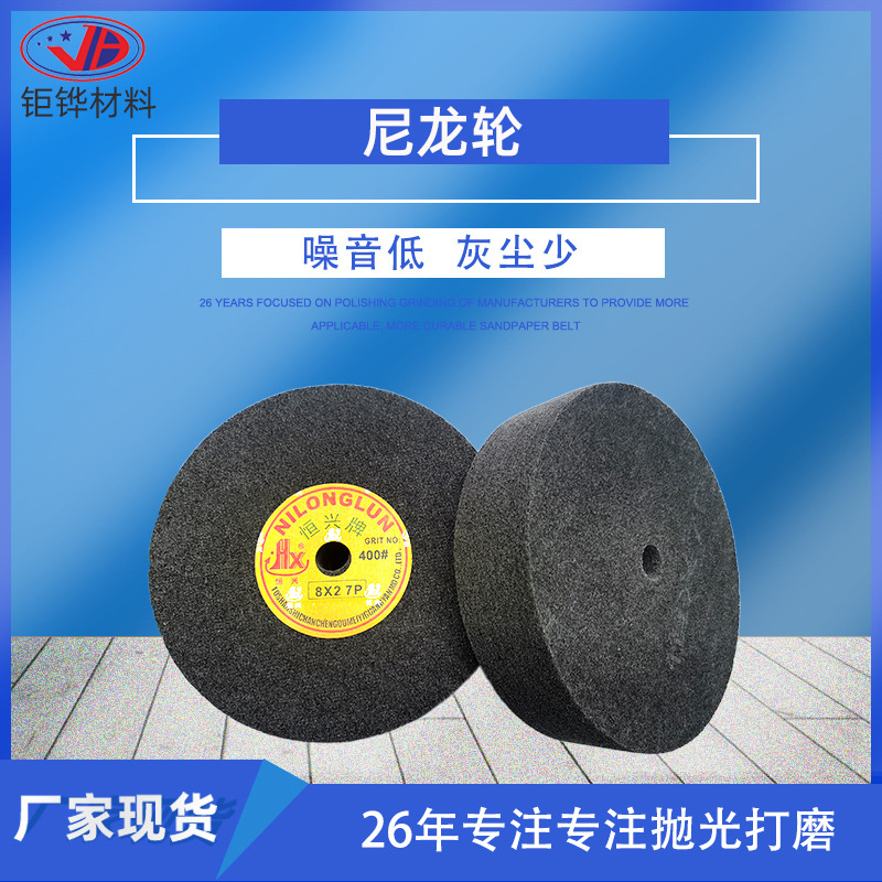 尼龙轮由优质矿砂及上等纤维制成。尼龙轮的优势:拉丝表面可以带一定曲率,拉丝效果前后保持一致,不会因研磨产品在作业时的损耗而产生纹路深浅不一,或拉丝纹紊乱等现象。尼龙轮结构具有防堵塞功能。这是由于它自身具有贴附性好,散热性好的特点而带来的优势。这样的优点利于拉丝时热量的散失,更有利于大面积表面的拉丝加工。