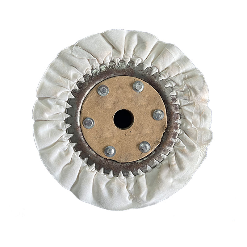 然后将一条条的布连成一整圈的布,在制作风轮的机器上,挤压收缩用铁爪固定,初步成型。通过钉子将三个夹相对一致的固定在一起,中心孔定位后切边。不同硬度的风轮使用不同的硬度过浆布料。