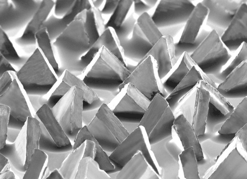 这些三角形陶瓷矿砂的自锐性好,在表面磨损后能够破裂出新的锋利尖角,像刀一样平整切开金属,有效防止研磨时由于砂带堵塞、热量在工件中聚集而产生打滑及烧伤工件的情况。